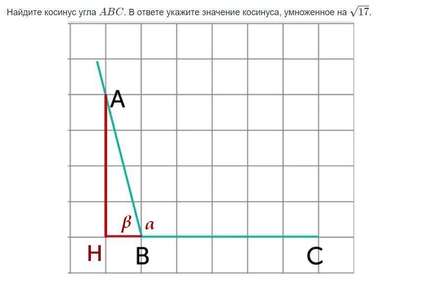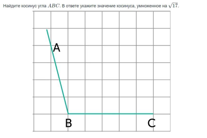 Задача: Найти косинус угла ABC. В ответе указать значение косинуса, умноженное на √17.
