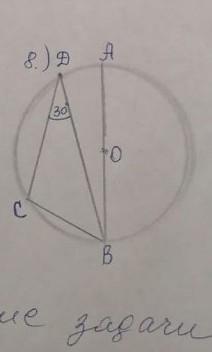 1) <CДВ=30° - вписанный угол, опирающийся на дугу СВ.
