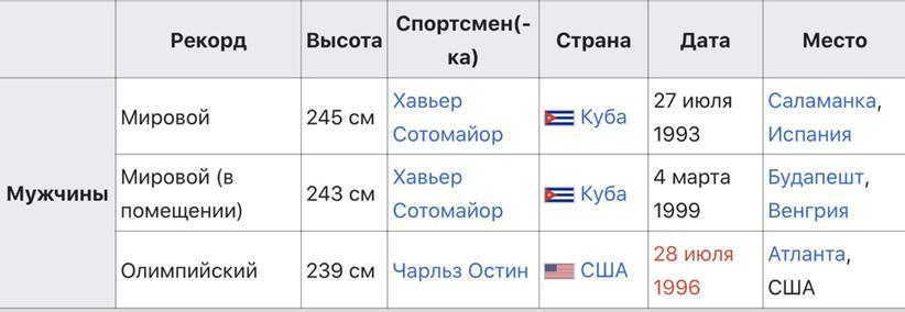 На фото должно быть всё понятно. Мужской мировой рекорд в прыжках высоту: 245 см.