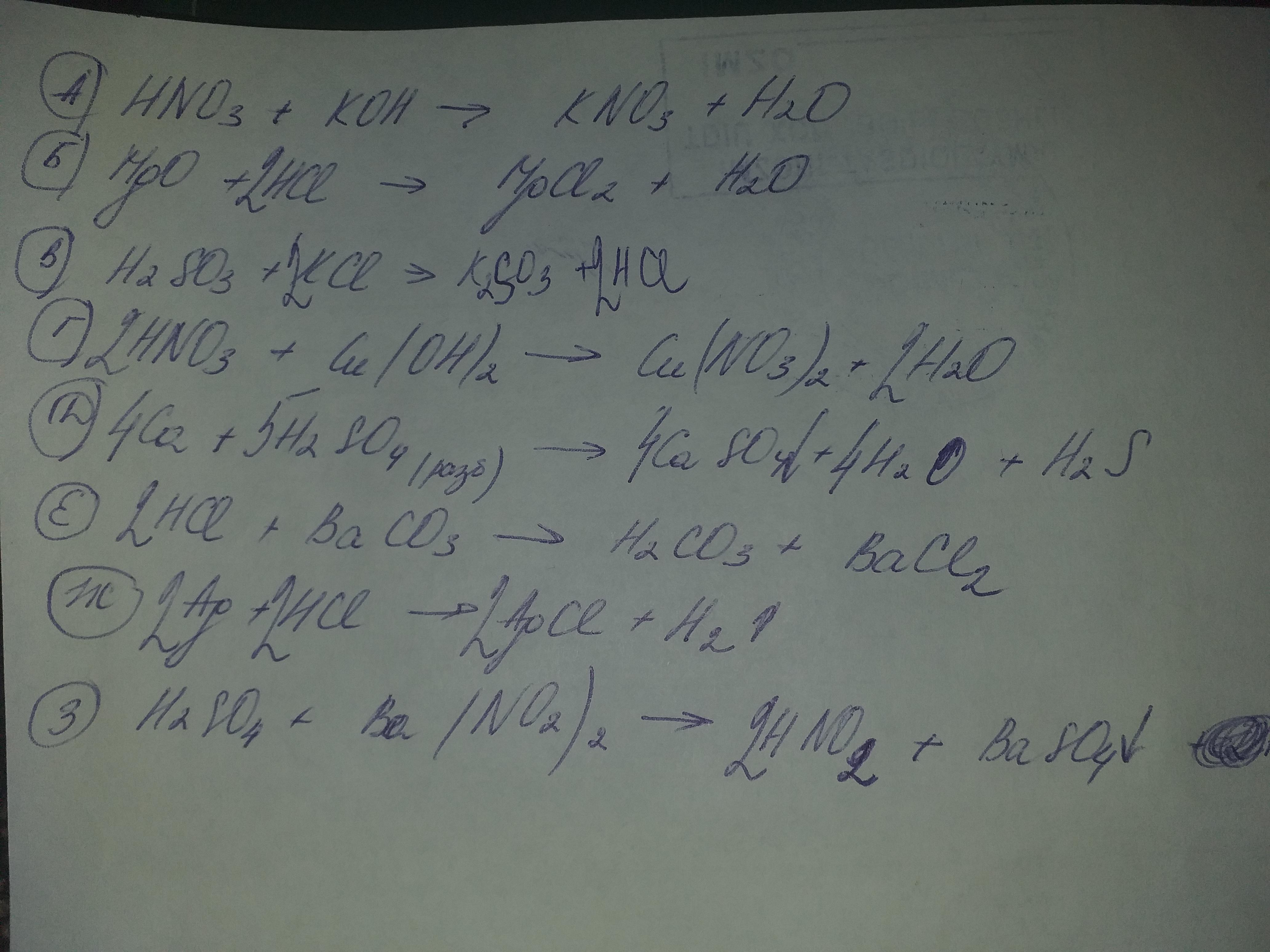 Допишите возможные уравнения реакций в молекулярном, полном и сокращённом ионном виде: