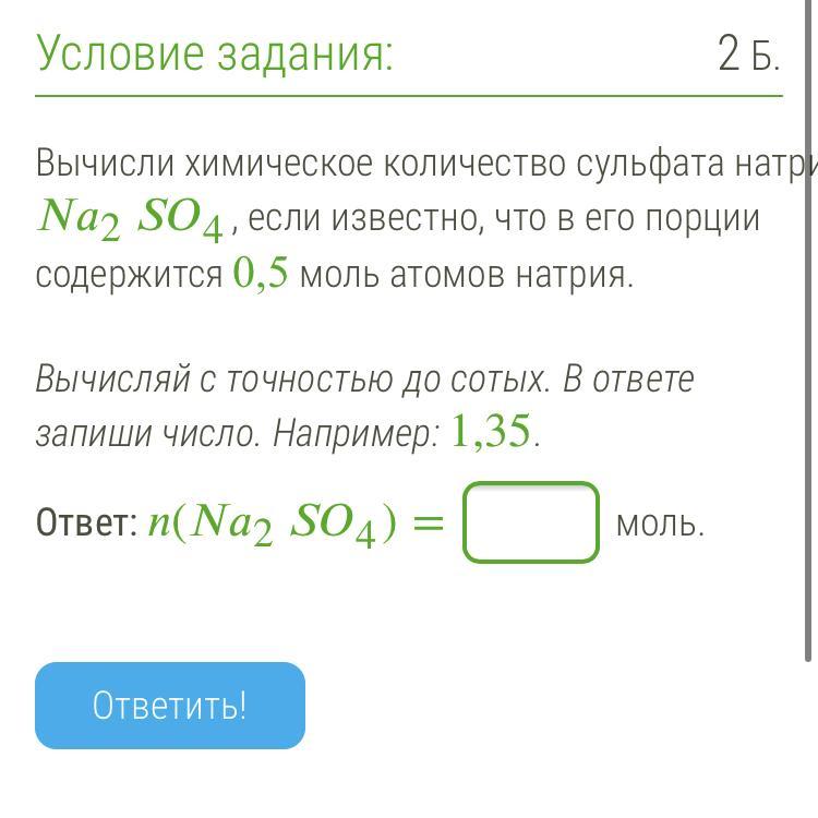 Соответственно, 0,5 моль содержится в 2 раза меньше моль молекул Na2SO4.