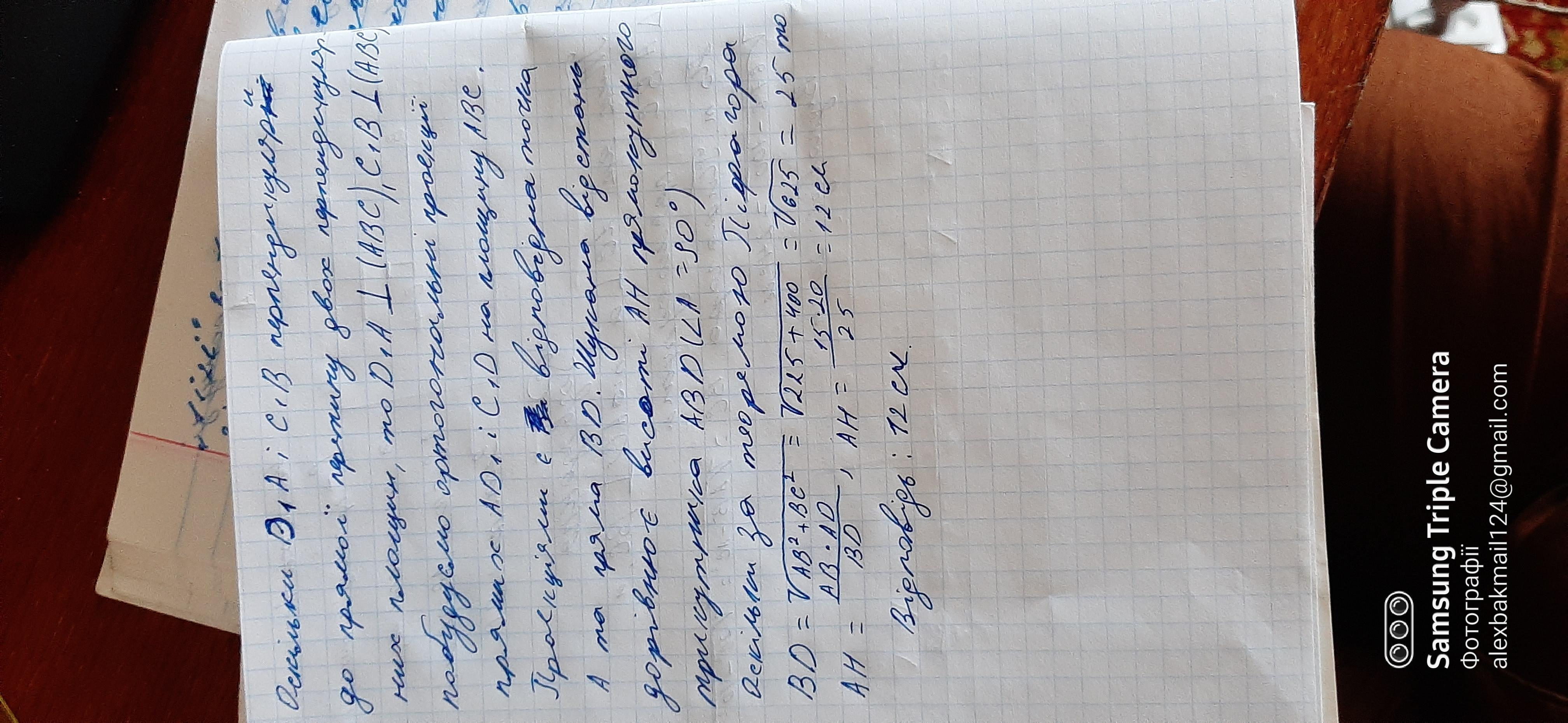 Рівні прямокутники ABCD і ABC 1 D 1 лежать у перпендикулярних площинах. Знайдіть відстань між мимобіжними прямими AD 1 і С 1 D , якщо АВ=15 см, ВС=20 см.