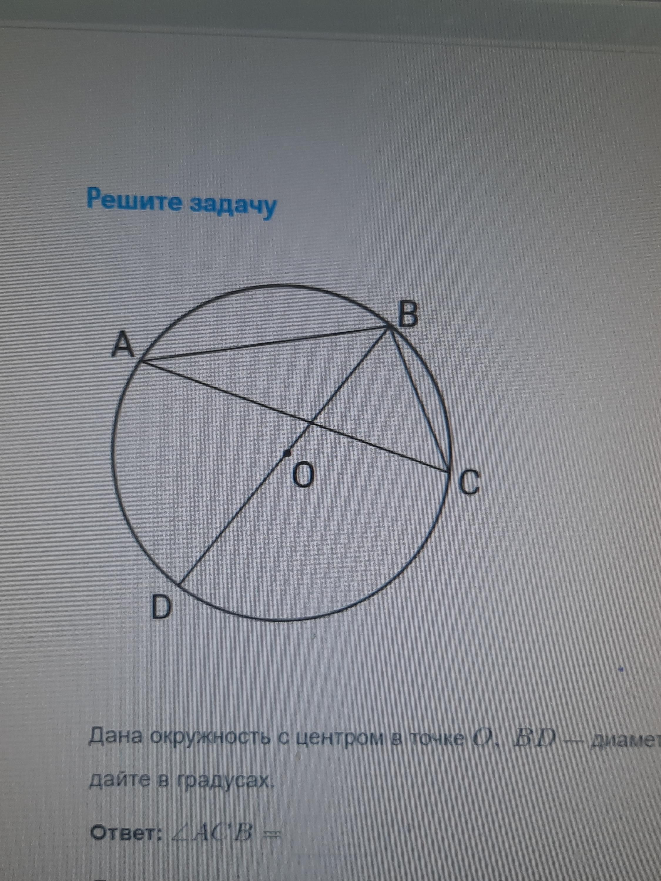 Дана окружность с центром в точке О, BD- диаметр, угол ABD=43 , Найдите угол ACB. Ответ дайте в градусах