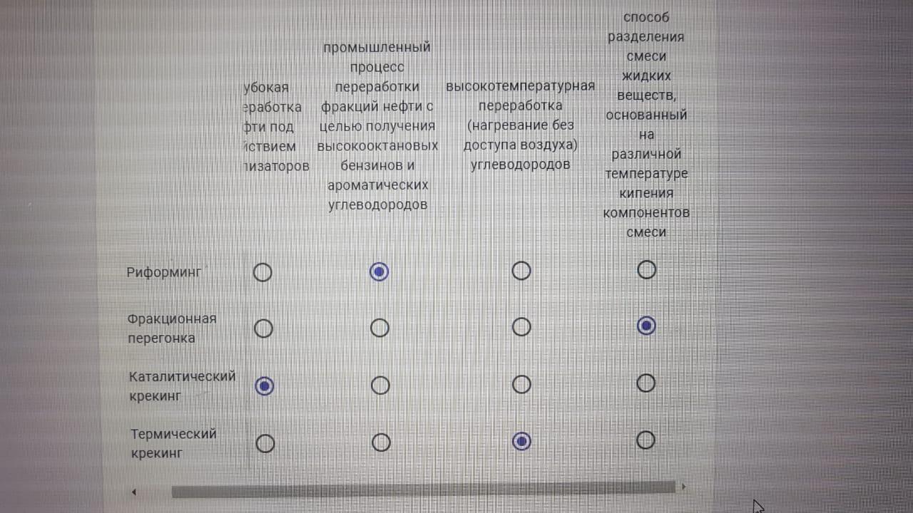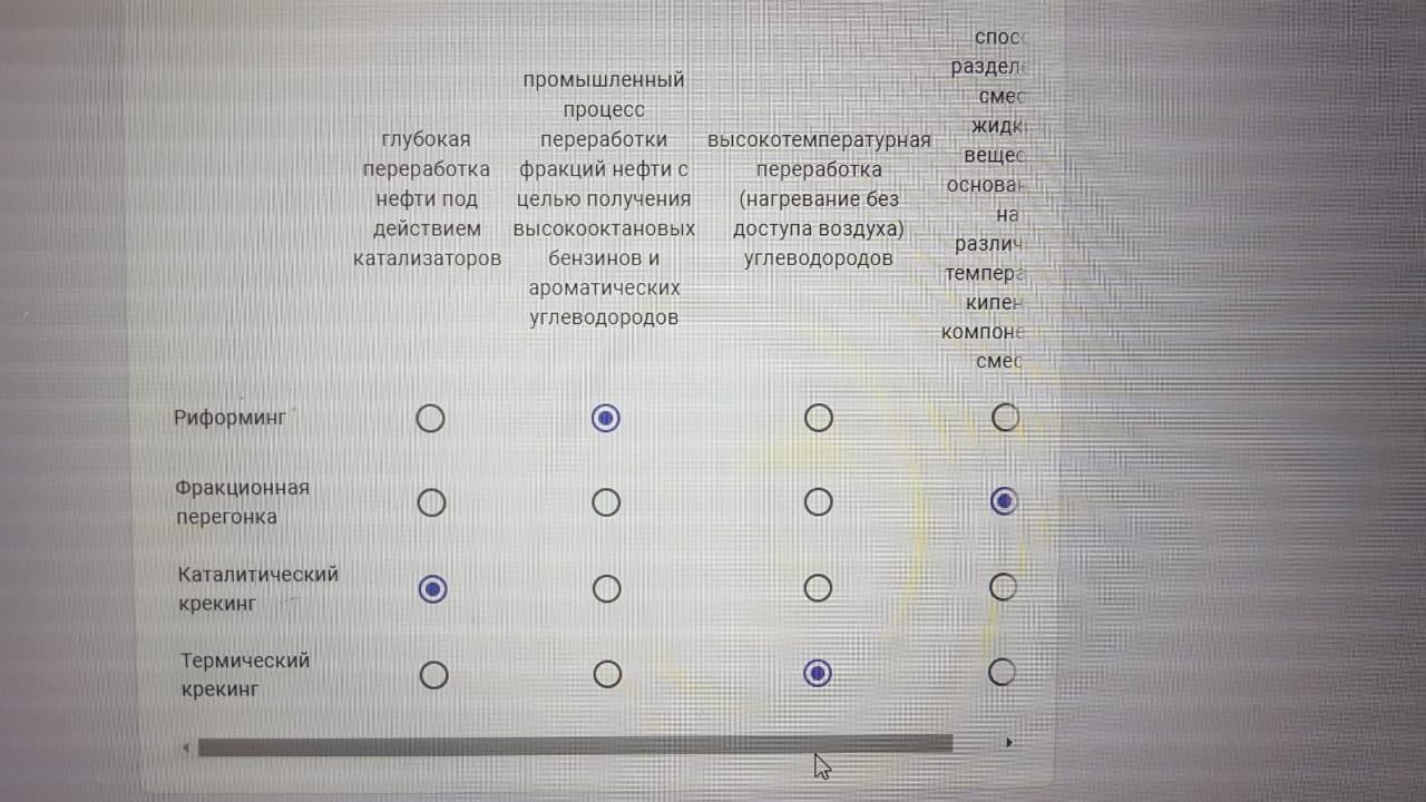 Установите соответствие между названием метода переработки нефти и характером процессов при этом методе. Ответ дайте в виде последовательности цифр, соответствующих буквам по алфавиту