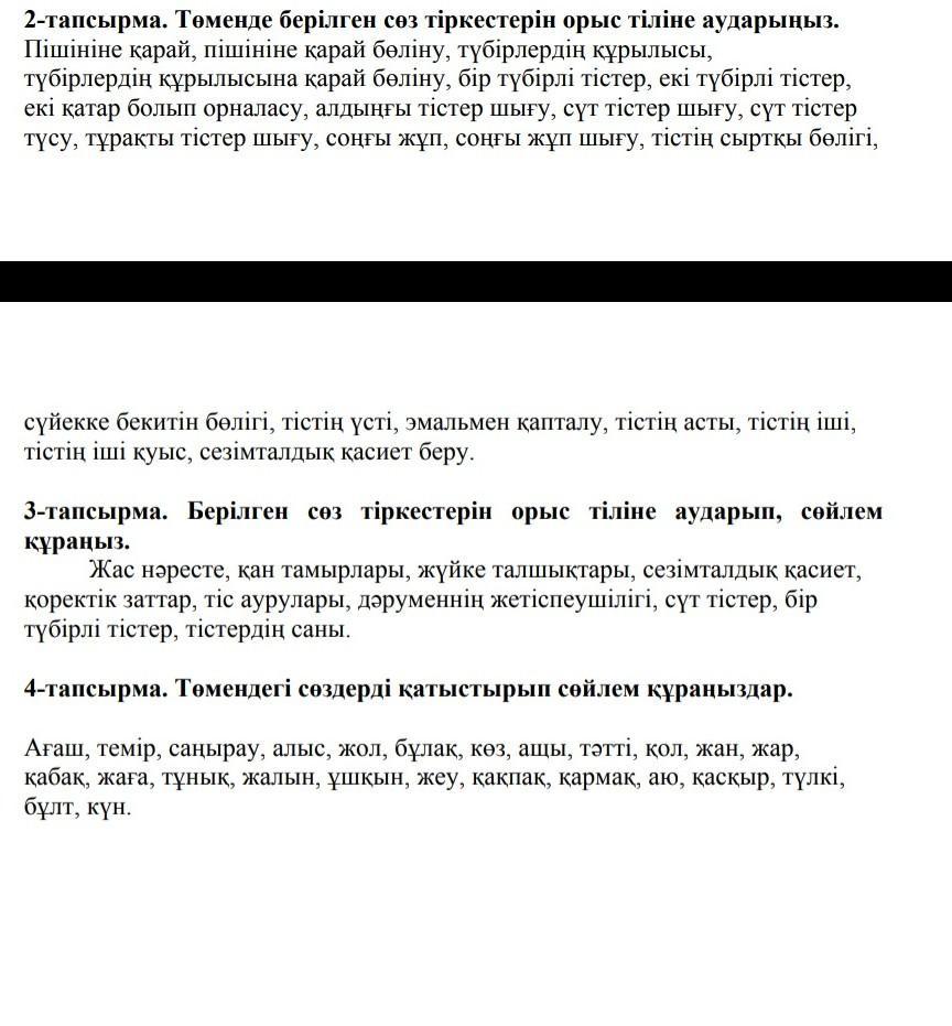 Задача 3. Переведите приведенные фразы на русский язык и составьте предложение. Младенец, кровеносные сосуды, нервные волокна, чувствительность, питательные вещества, зубная боль, дефицит витаминов, молочные зубы, однокорневые зубы, количество зубов.
