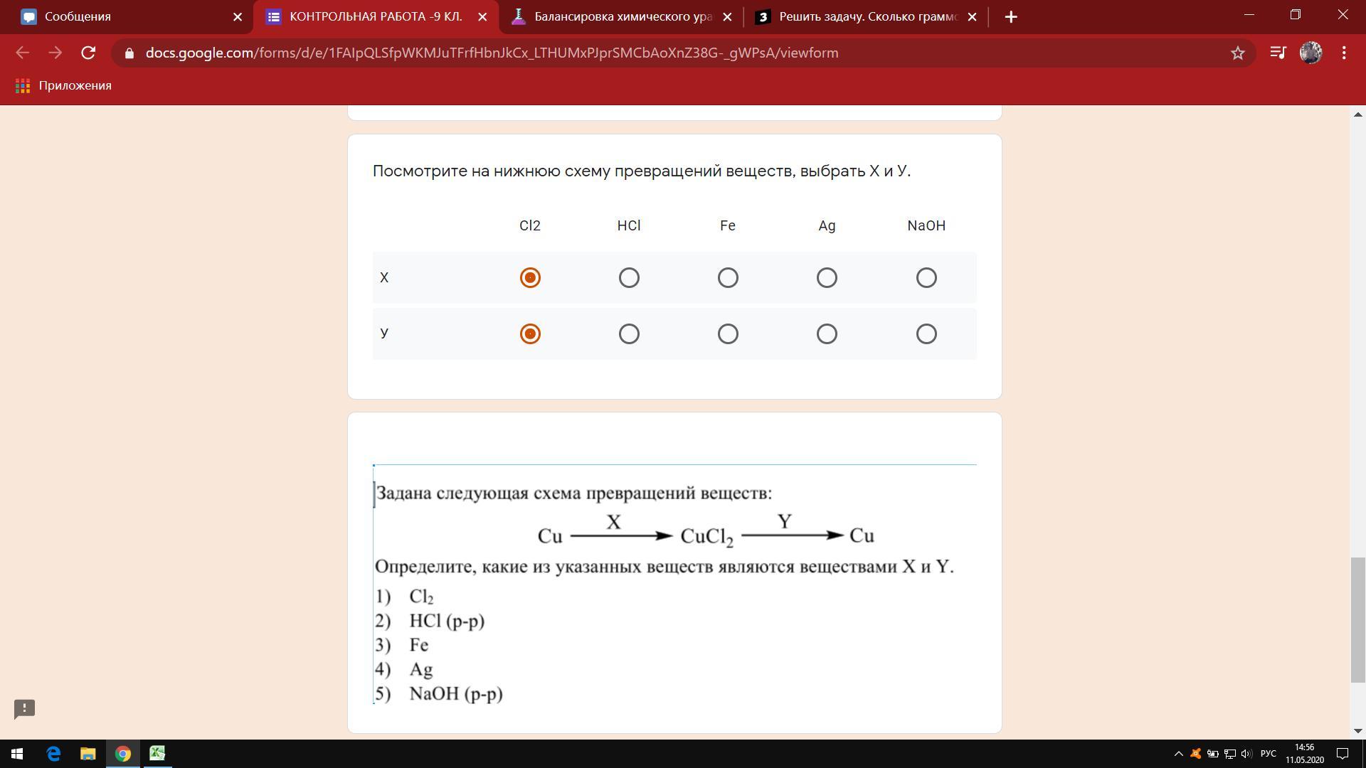 X = Cl2 Cu + Cl2 = CuCl2