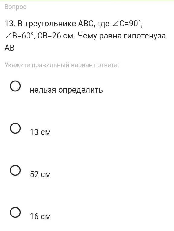 Т.к. если бы ВС было равно 26 см, то сторона, лежащая против угла в 30° равна половине гипотенузы. Тут так нельзя