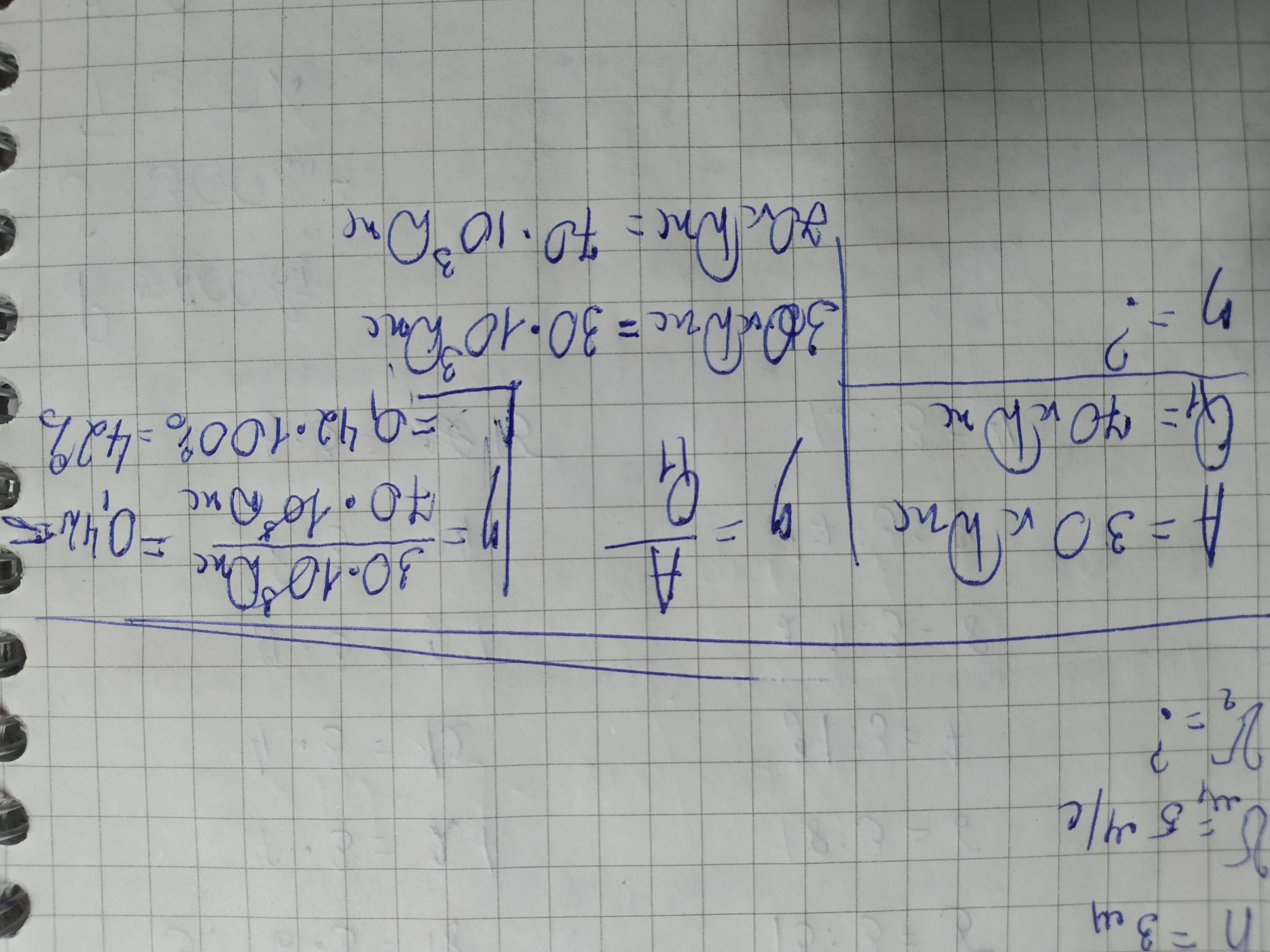 За 1 цикл рабочее тело теплового двигателя совершило работу 30 кДж и отдало холодильнику 70 кДж количества теплоты. КПД двигателя равен