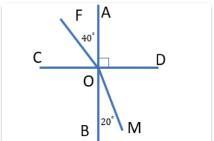 Решите пожалуйста : Прямые AB и CD взаимно перпендикулярны. Угол AOF равен 40 градусам, угол BOM равен 20 градусам. Найдите угол COF. Ответ дайте в градусах.