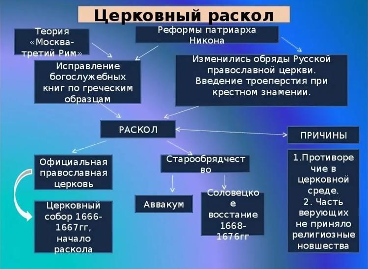 Причиной раскола стали слишком жёсткие методы, которыми Никон осуществлял реформу, вызвав противостояние в церкви и волнения в народе: