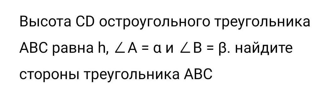 ВС=h/sinв AС=h/sinа АВ=( hsin(а+в) )/(sinв/sinа)
