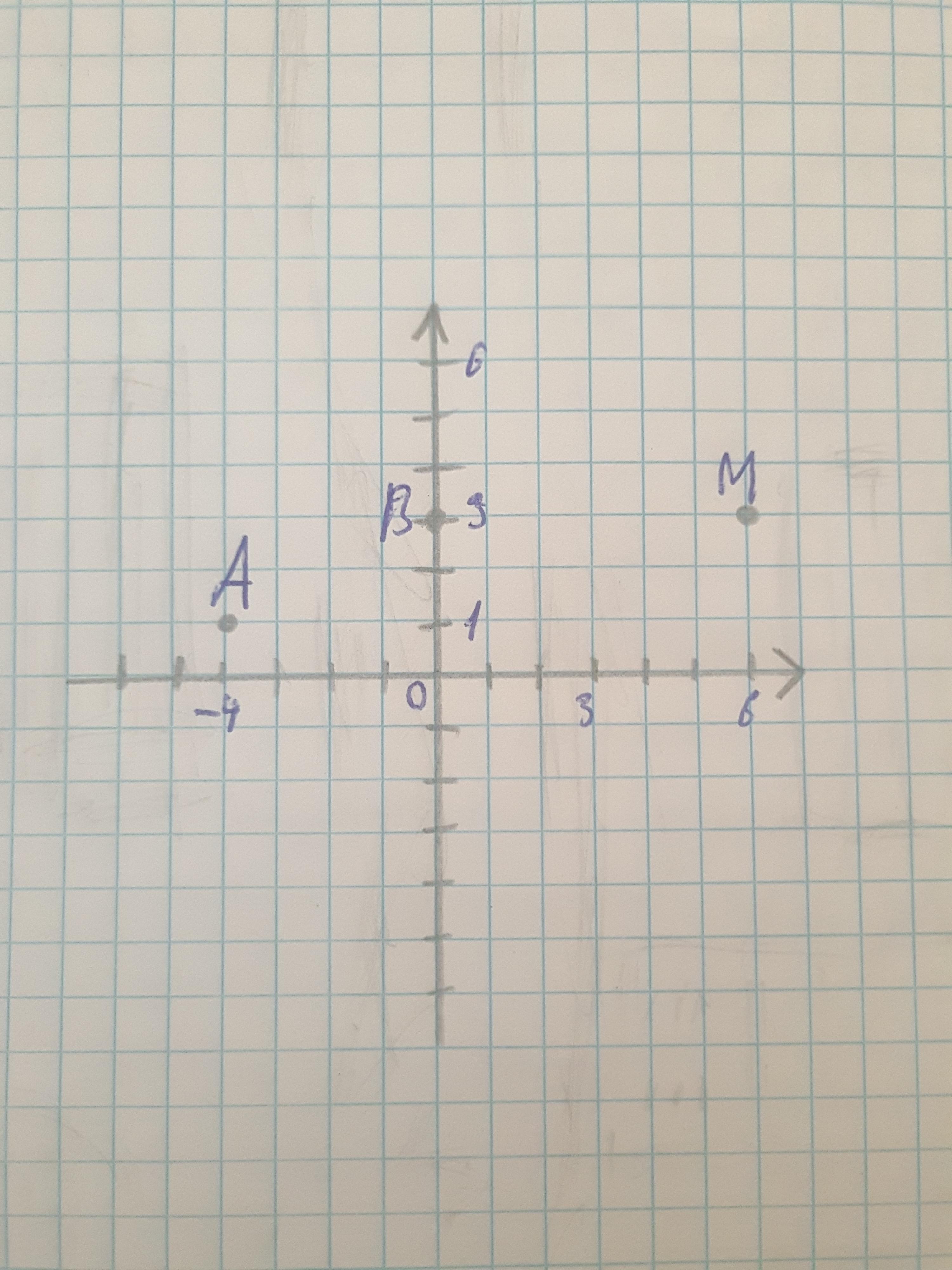 2. а)° Позначити на координатній площині точки А(-4;1) В(0;3), М (6; 3).