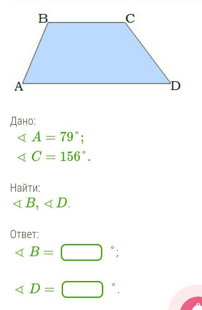 Т.к. ВС║AD, то ∠А+∠В=180 и ∠С+∠D=180