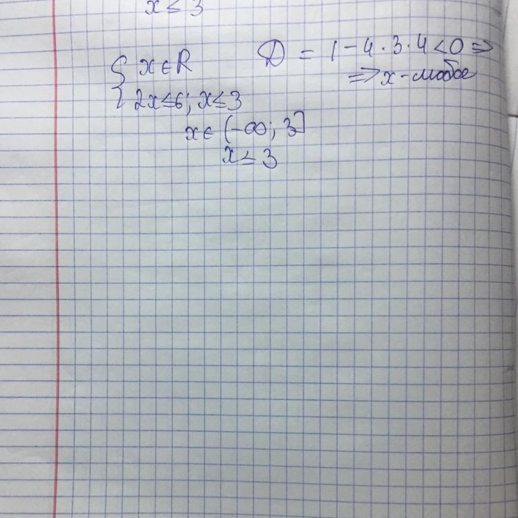 3x^2-x+4>>0 здесь D<0, поэтому решение (-~;+~), 2x<<6, x<<3,