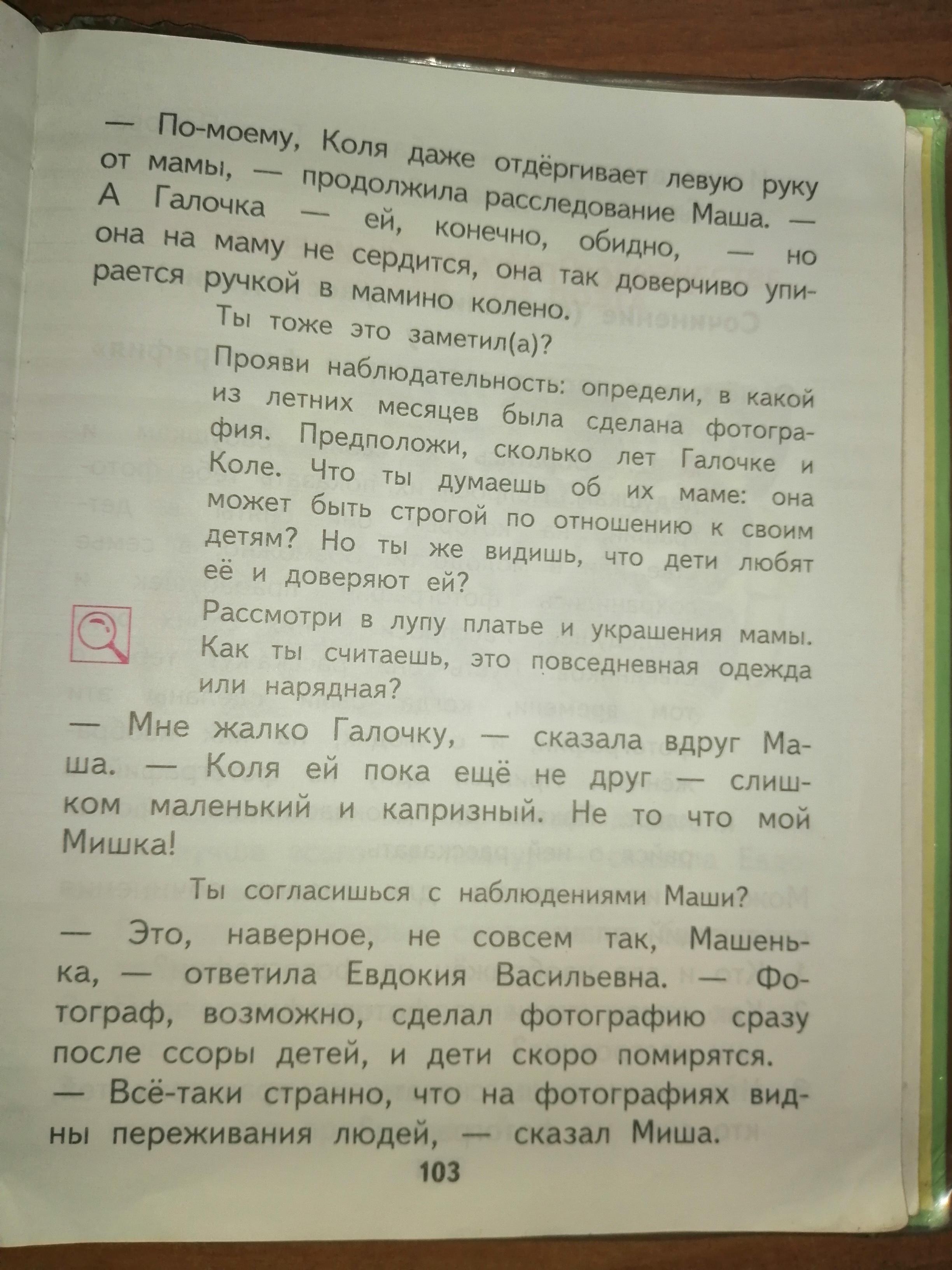Ответ:Фото было сделано летом, Галочек 10 лет, а Коле 5-6лет. Мать выглядит строгой, думаю она воспитывает их правильно и строго. Я вижу что дети любят, и я думаю они понимают что их мама, правильно их воспитывает