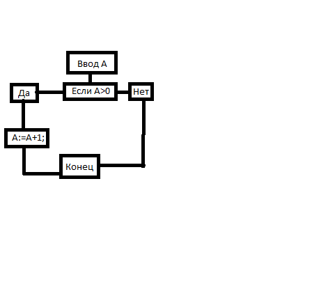 Дано целое число А. Если значение А>0, то необходимо увеличить его на единицу. Разобрать схему алгоритма для решения этой задачию Протестировать алгоритм для А=5,А=-4,А=0 в