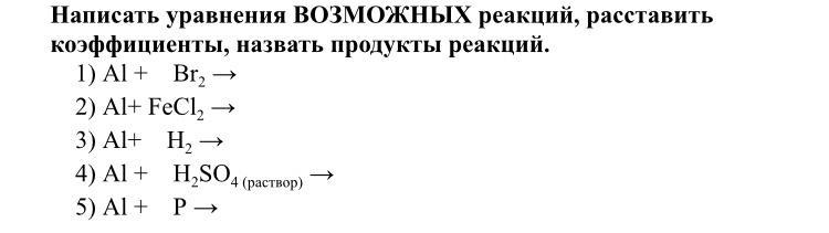 1) 2Al + 3Br₂ (t°) → 2AlBr₃