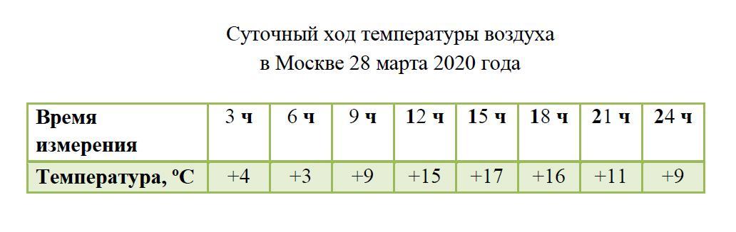 Используя предложенные в таблице данные, вычислите суточную амплитуду температуры воздуха. В ответе напишите только число.