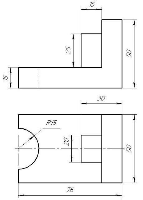 Необходимо построить 3 вида, из них есть только два: вид спереди и вид сверху.