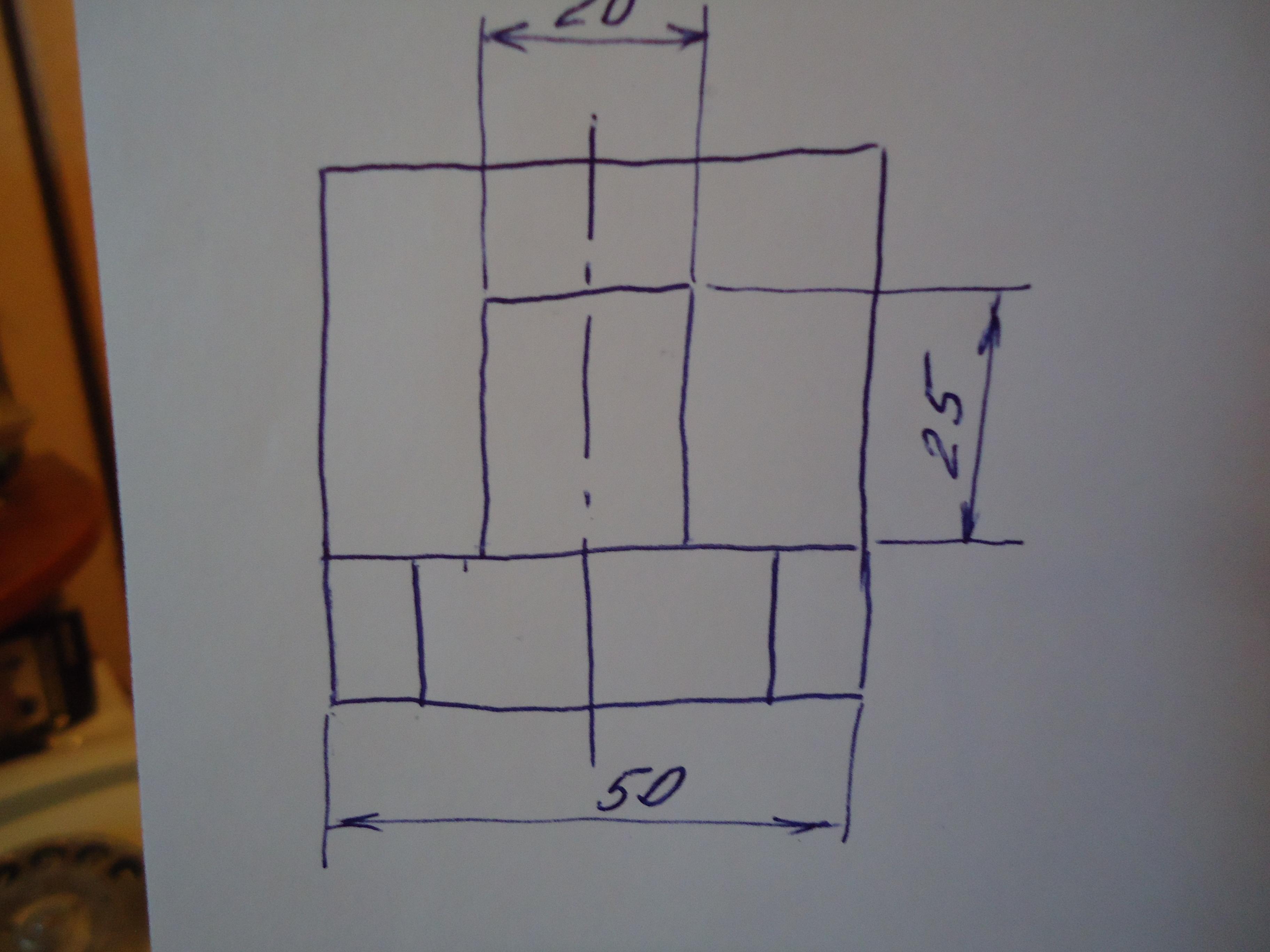 Виды спереди и сверху я не повторяла, а показала только вид слева, т.к. он очень простой. Проекция выполнена от руки.