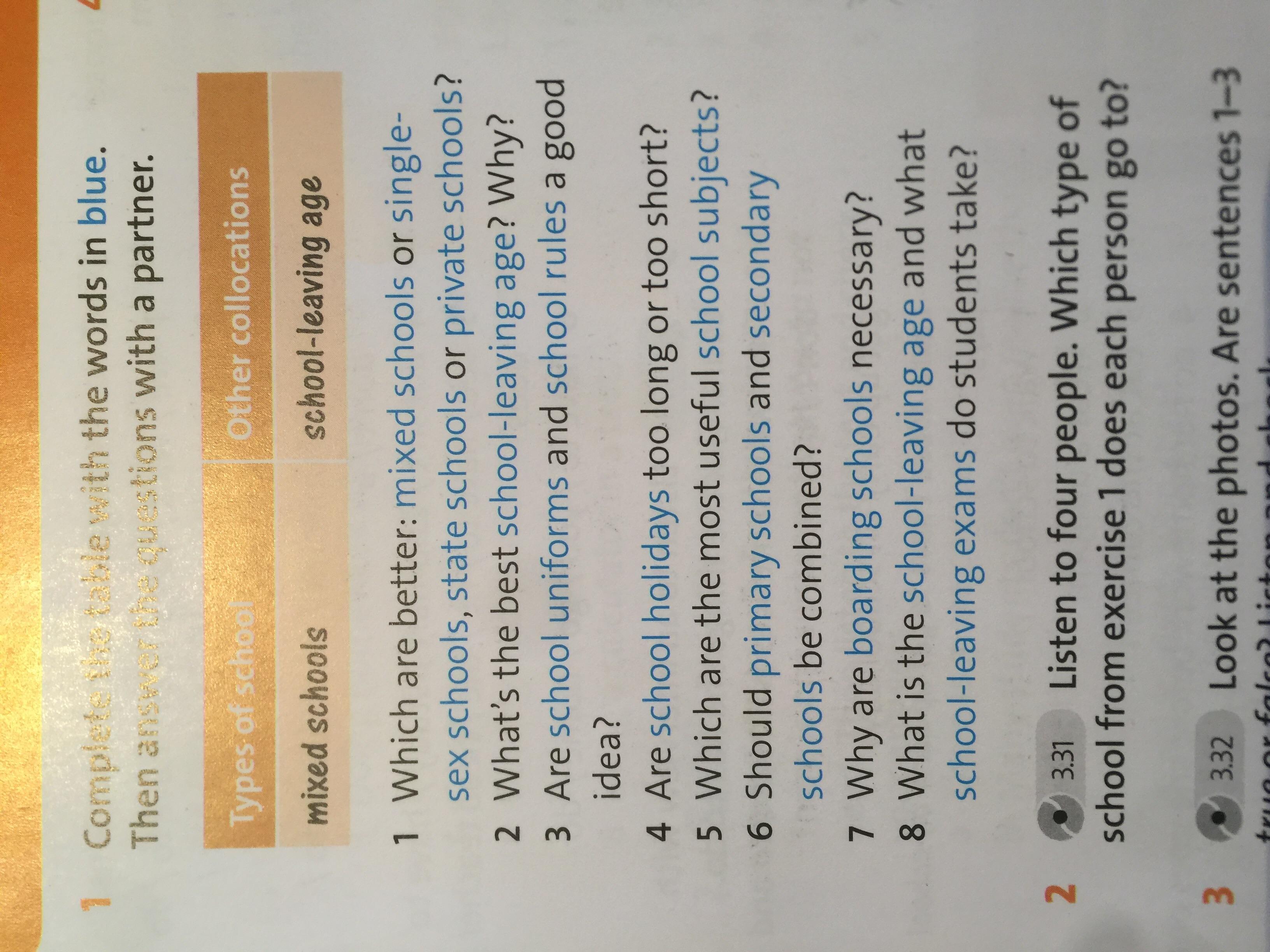 complete the table with the words in “blue”.Then answer the questions with a partner.