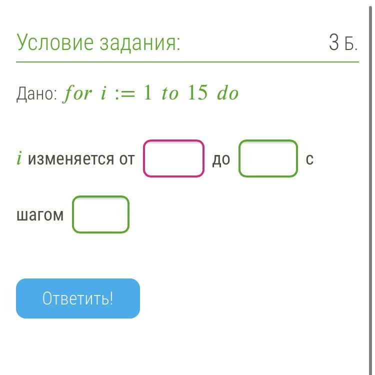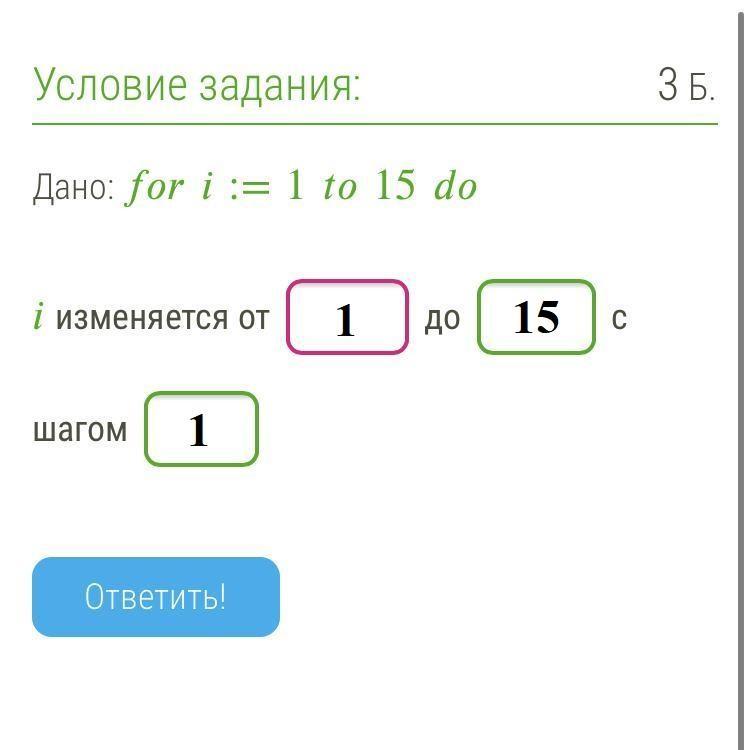 for параметр (счетчик) := начальное значение to конечное значение do тело цикла