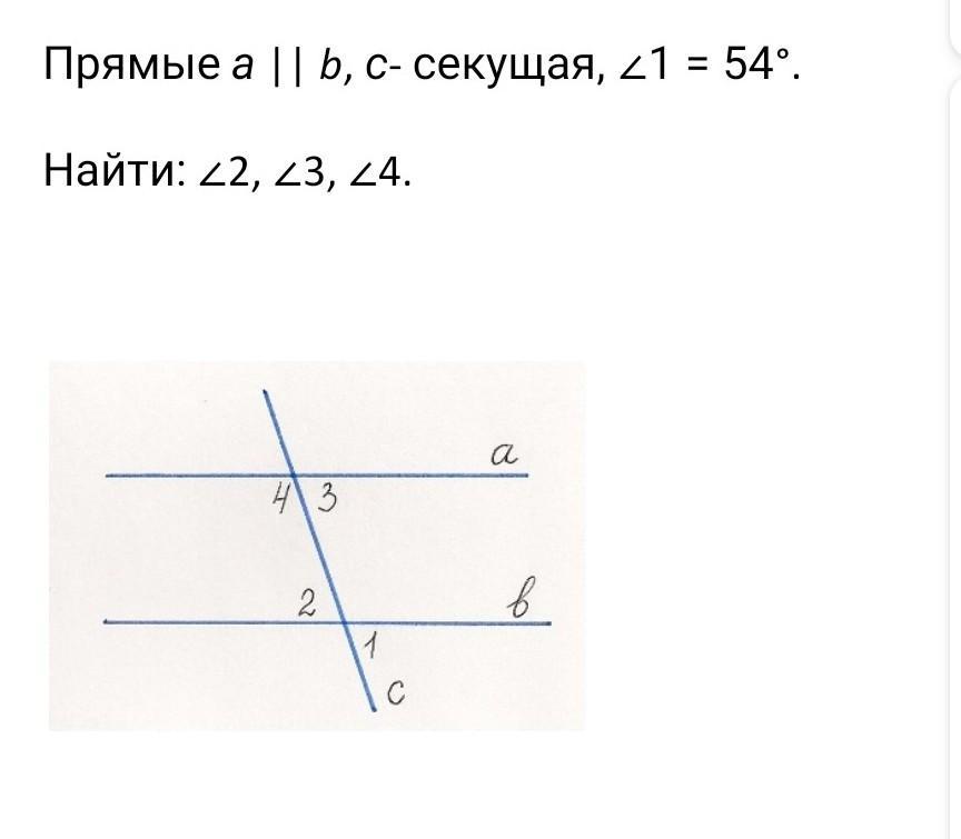 прямые а параленьна б с- секущая угол 1 = 54 градуса найти угол 1, 3, 4