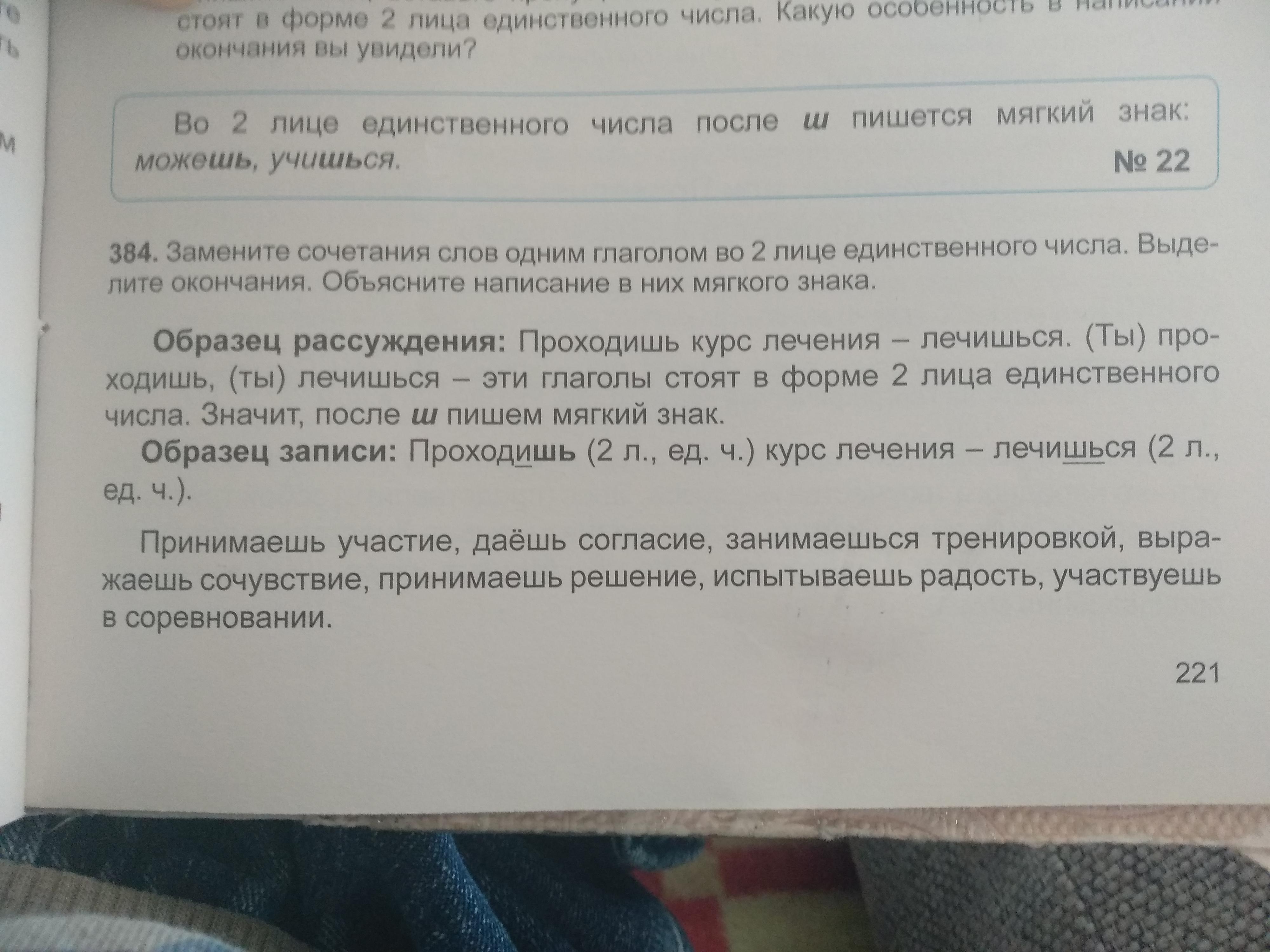Замените сочетания слов одним глаголом во втором лице единственного числа. Выделите окончания. Объясните написание в них мягкого знака.