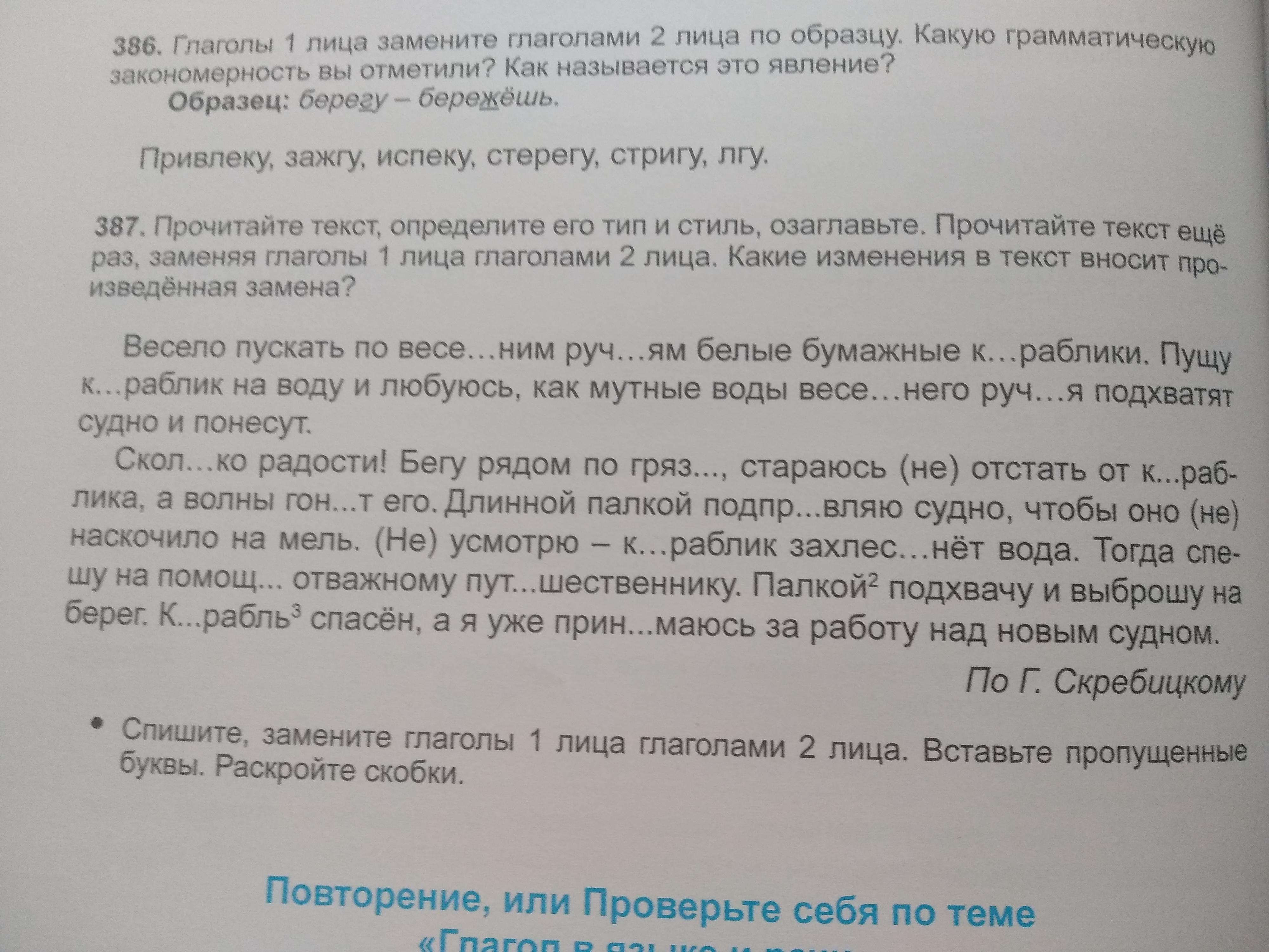 387. Прочитайте текст, определите его тип и стиль, озаглавьте. Прочитайте текст ещё раз, заменяя глаголы 1 лица глаголами 2 лица. Какие изменения в текст вносит про- изведённая замена?