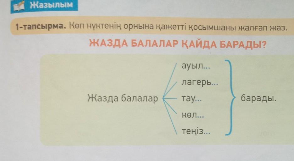 1-тапсырма. Көп нүктенің орнына қажетті қосымшаны жалғап жаз.