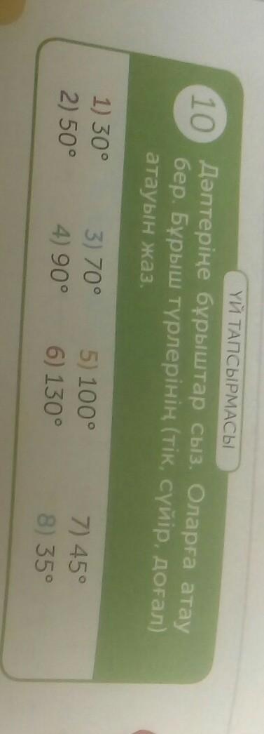 10 Дәптеріңе бұрыштар сыз. Оларға атау