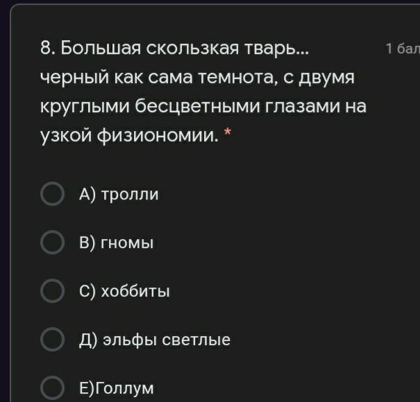 е)Голлум потому что хоббиты это маленькие толстенькие существа с заросшей шерстью ногами