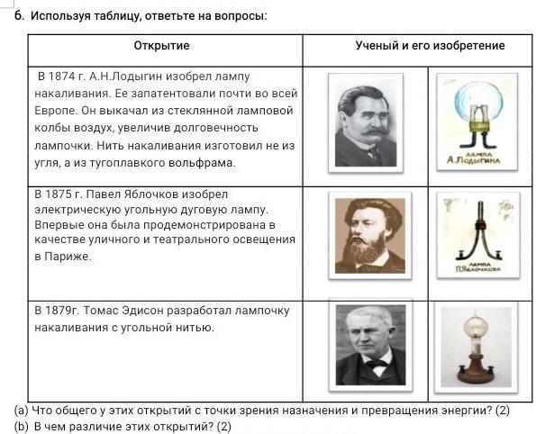 используя таблицу ответьте на вопросы: что общего у этих открытий? в чем различие этих открытий?