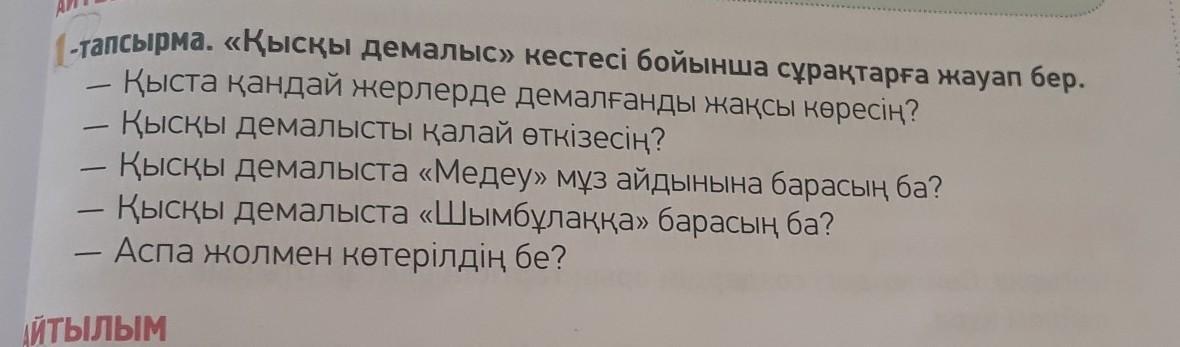 1)Қысқы демалыста көбіне-көп үйде отыры,сериал қарағанды ұнатамын.
