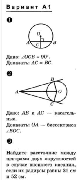 2) Дано: АВ и АС-касательные. Доказать ОА-биссектриса ВОС