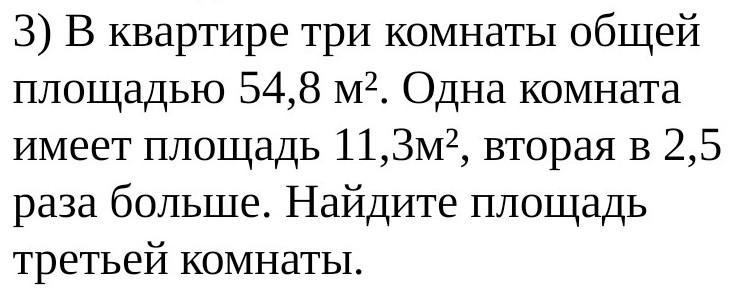 1) 11.3×2.5=28.25(м²) — площадь второй комнаты.