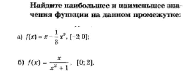 Найдите наибольшие и наименьшие значения функции на данном промежутке.