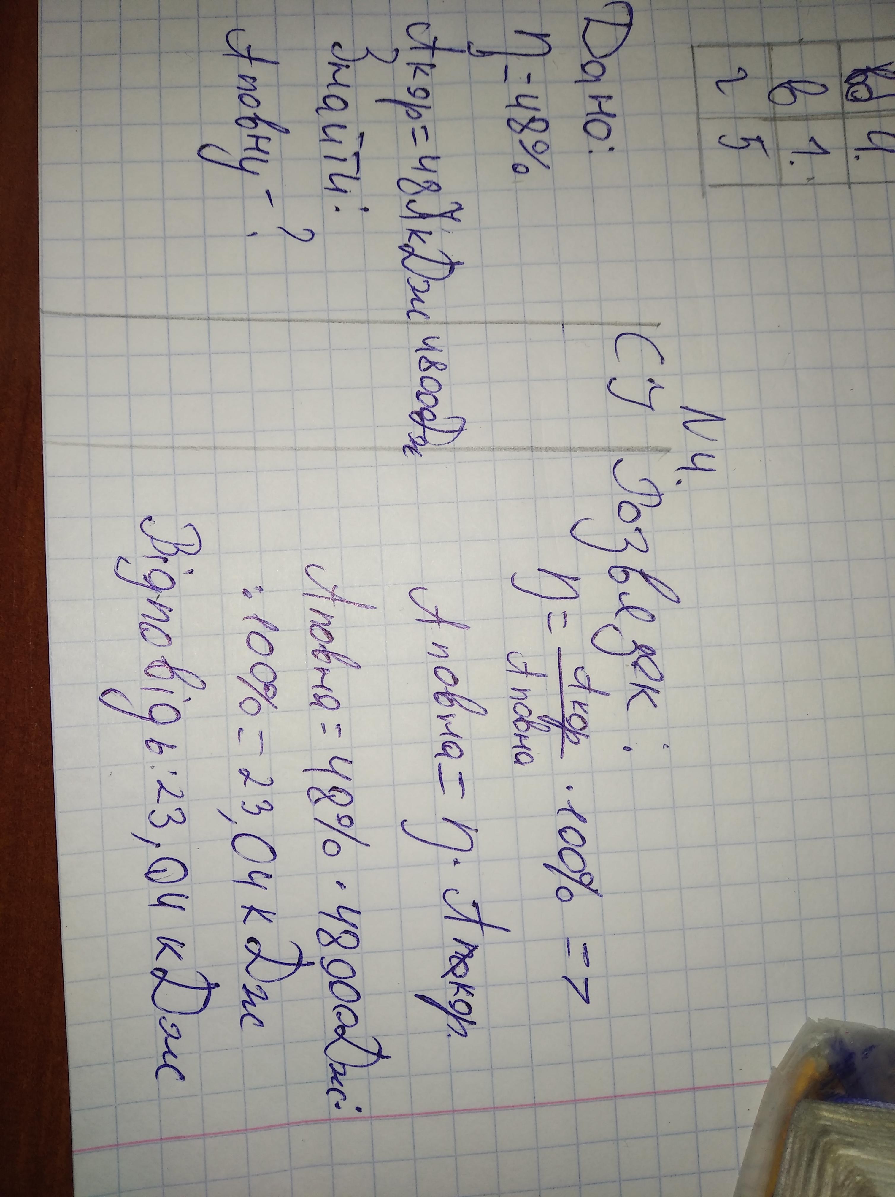 Механізм, ККД якого дорівнює 48%, виконав корисну роботу 48 кДж. Визначте повну