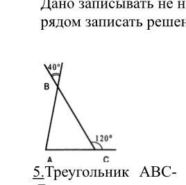 4.По данным рисунка найдите углы треугольника АВС. ( Дано записывать не надо, в тетради сделать рисунок и рядом записать решение)