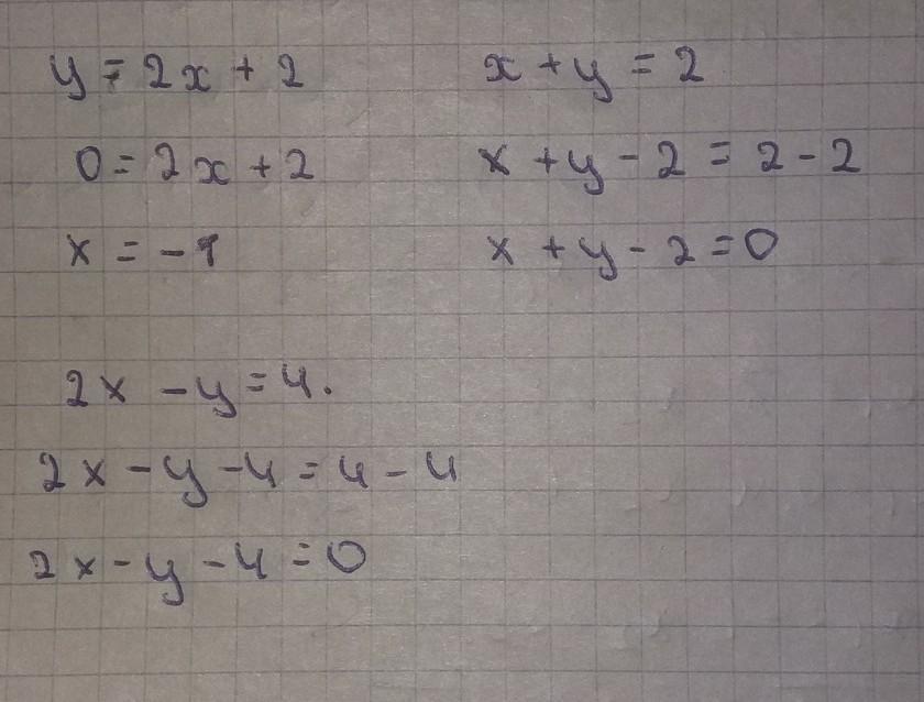 1.Построение графика линейной функции y= 2x+2. 2. Решить систему уравнений : х+у=2 ; 2х-у=4.