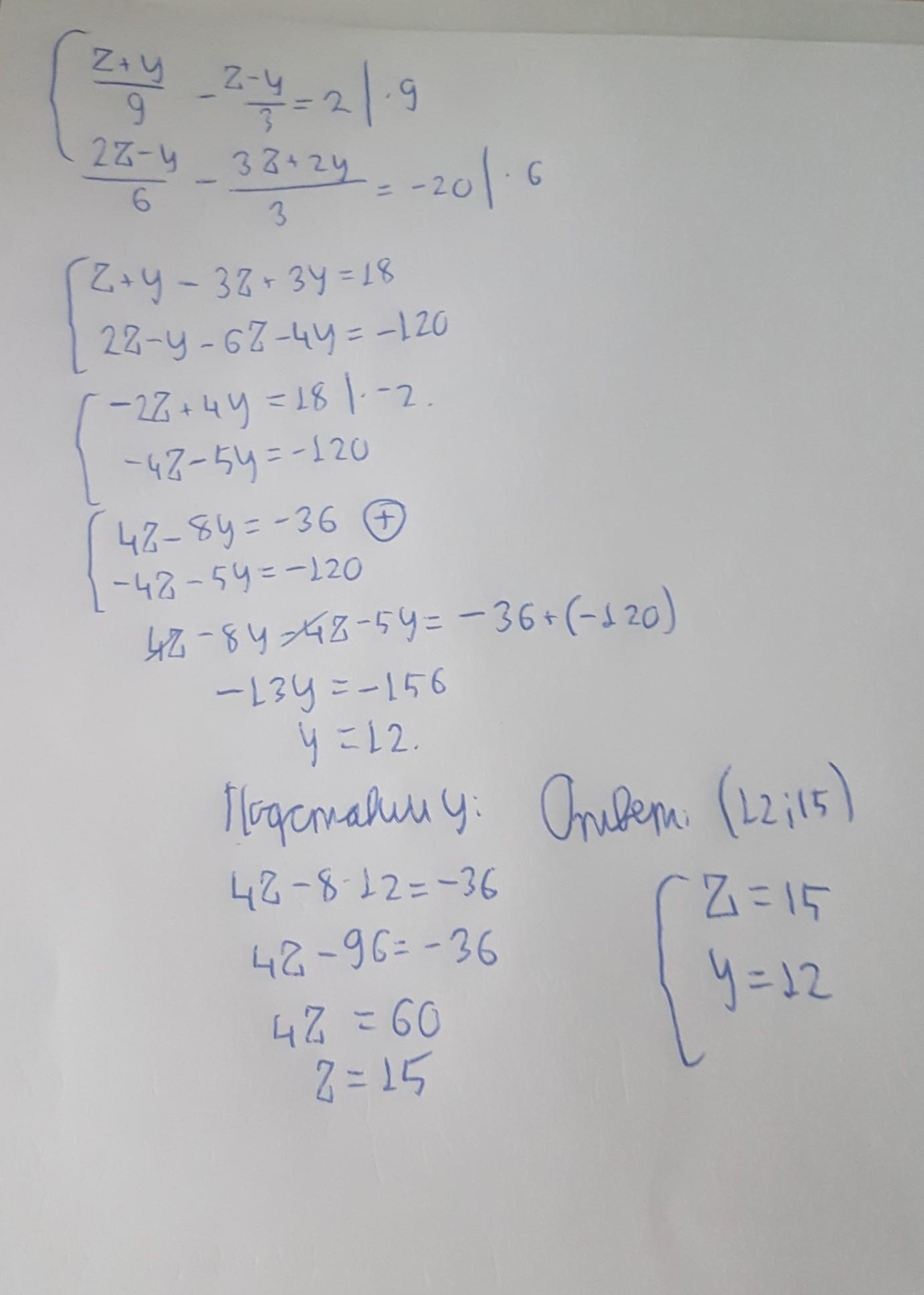 -13у=-156⇒ у=12, z=2*e-9=2*12-9=15
