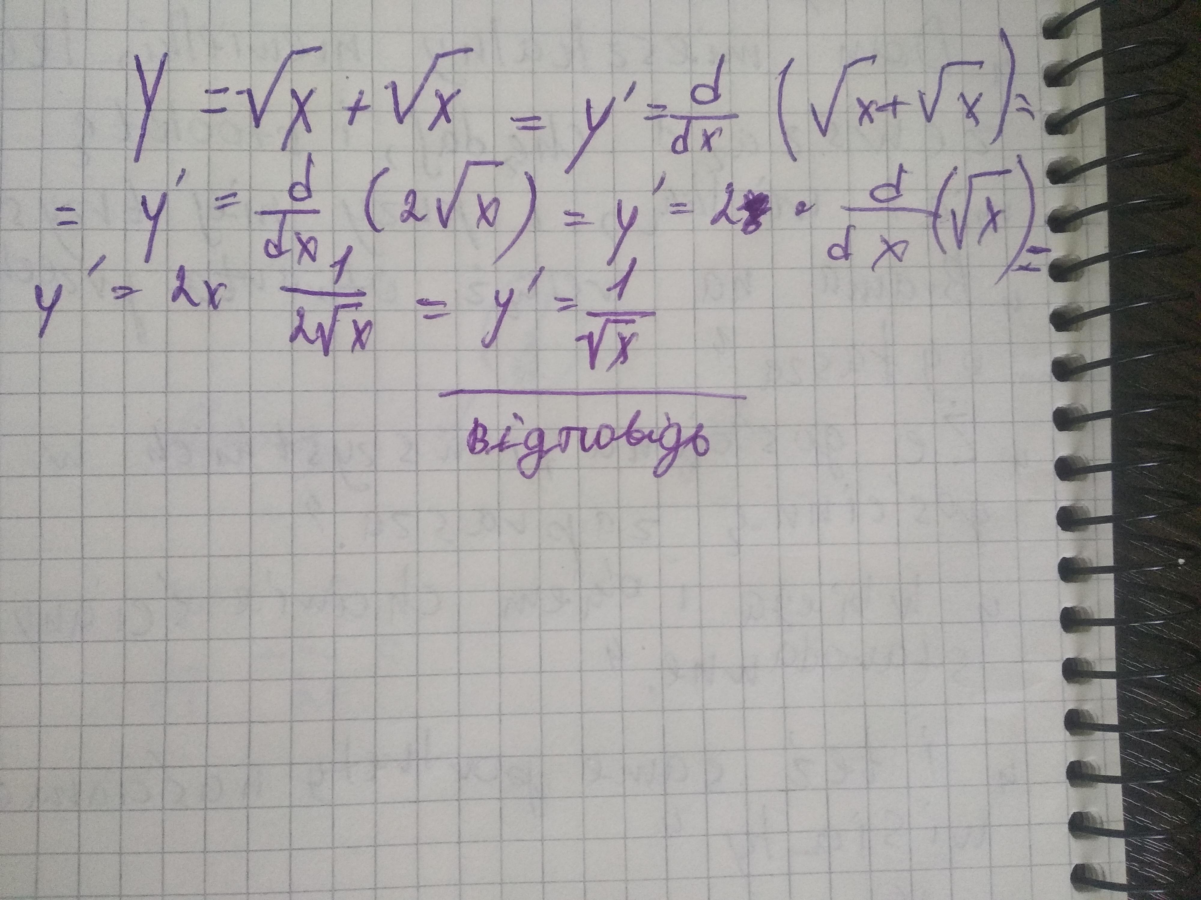 y=√x+√x знайти похідну