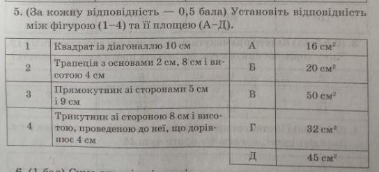 СРОЧНО!!!((( установіть відповідність між фігурою та її площею​