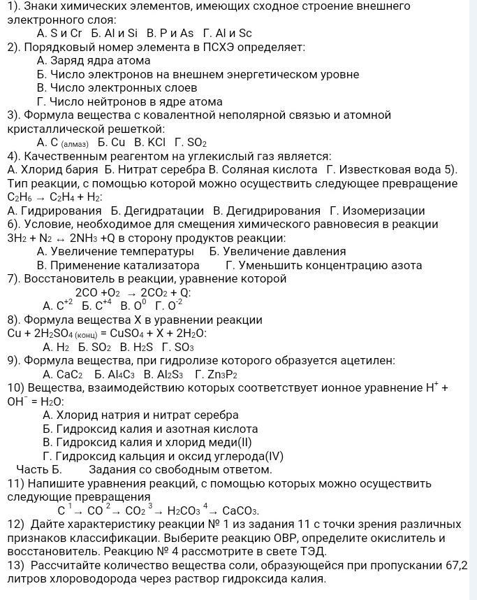 ХИМИЯ 9 КЛАСС, итоговая контрольная работа