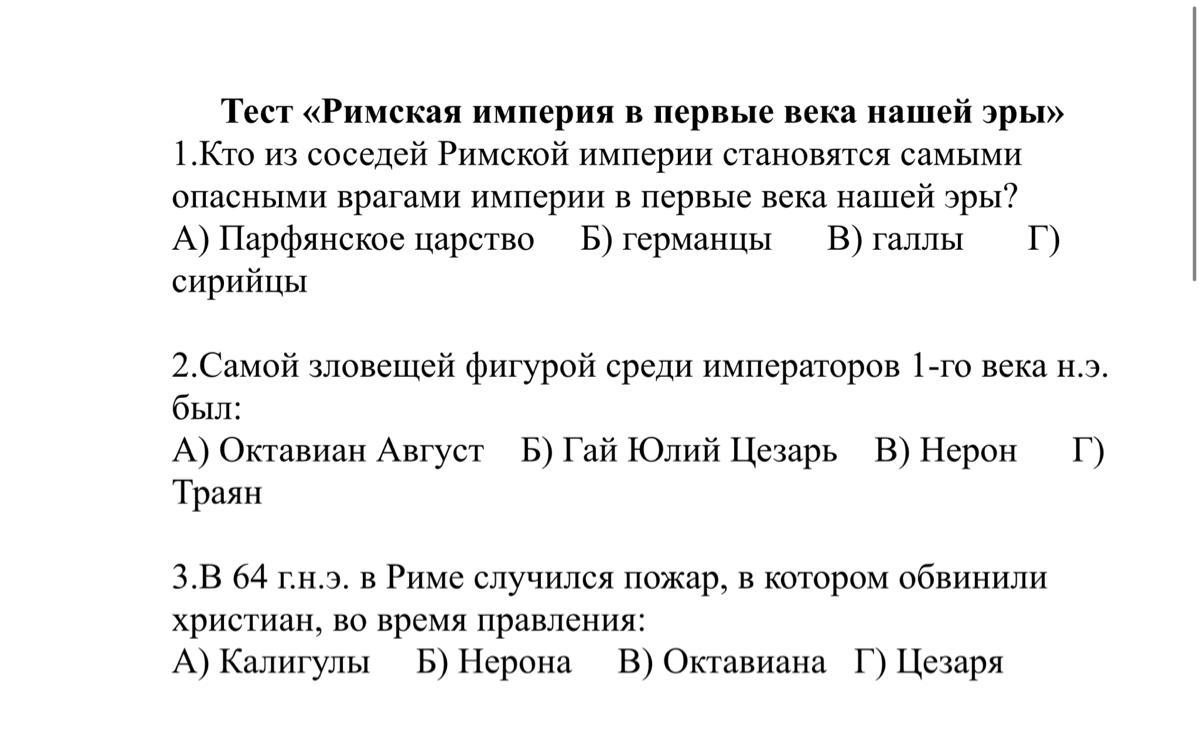 А) Калигулы Б)Нерона В) Октавиана Г) Цезаря