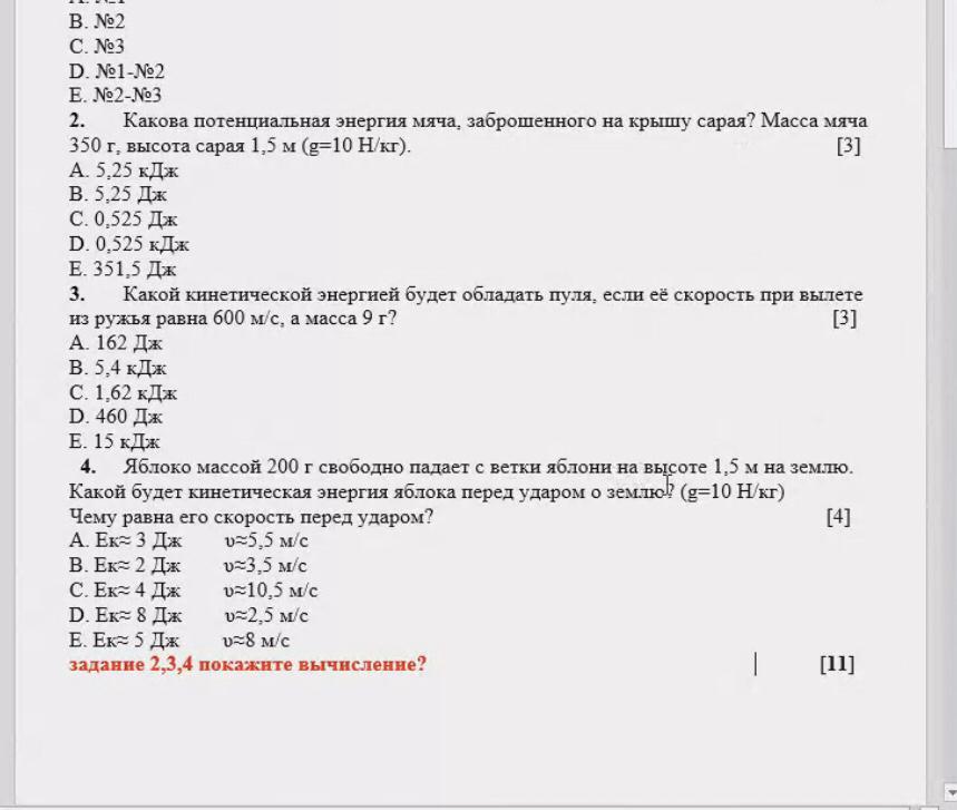 4) А ( 3дж, 5.5м/с )