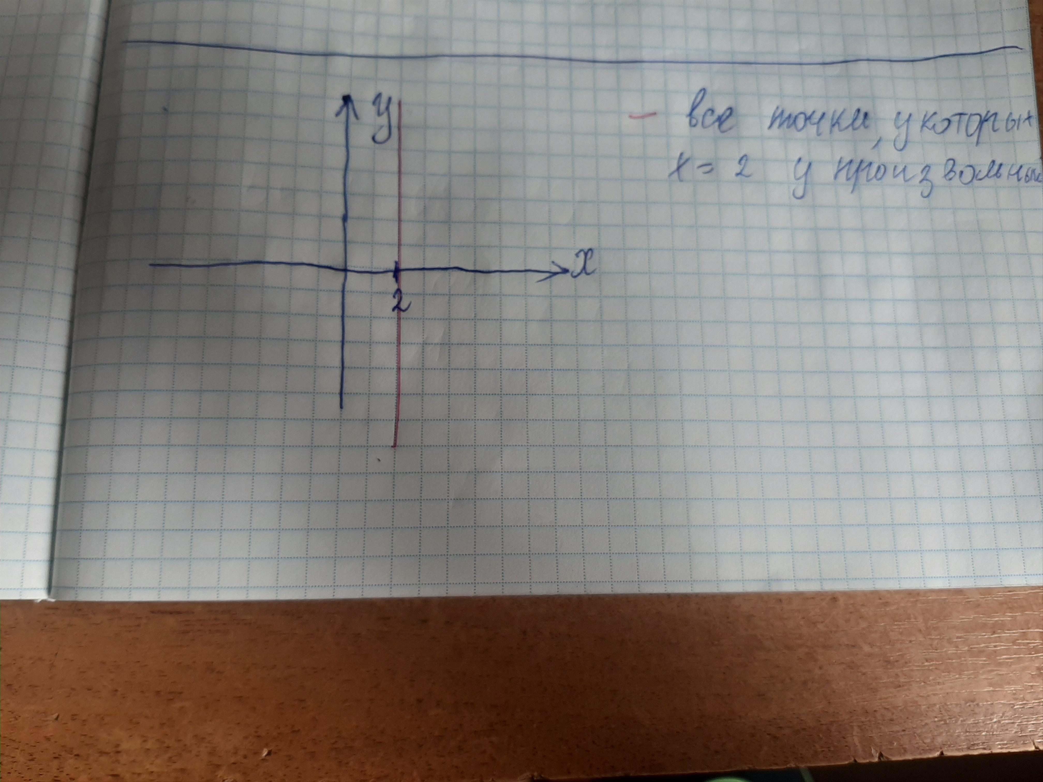Изобразите на координатной плоскости все точки (x; y) такие, что x = 2, y — произвольное число. Помогите пожалуйста