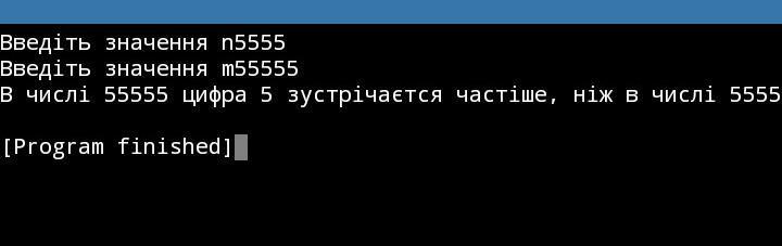 4) Виводимо число, в якому більше цифр 5