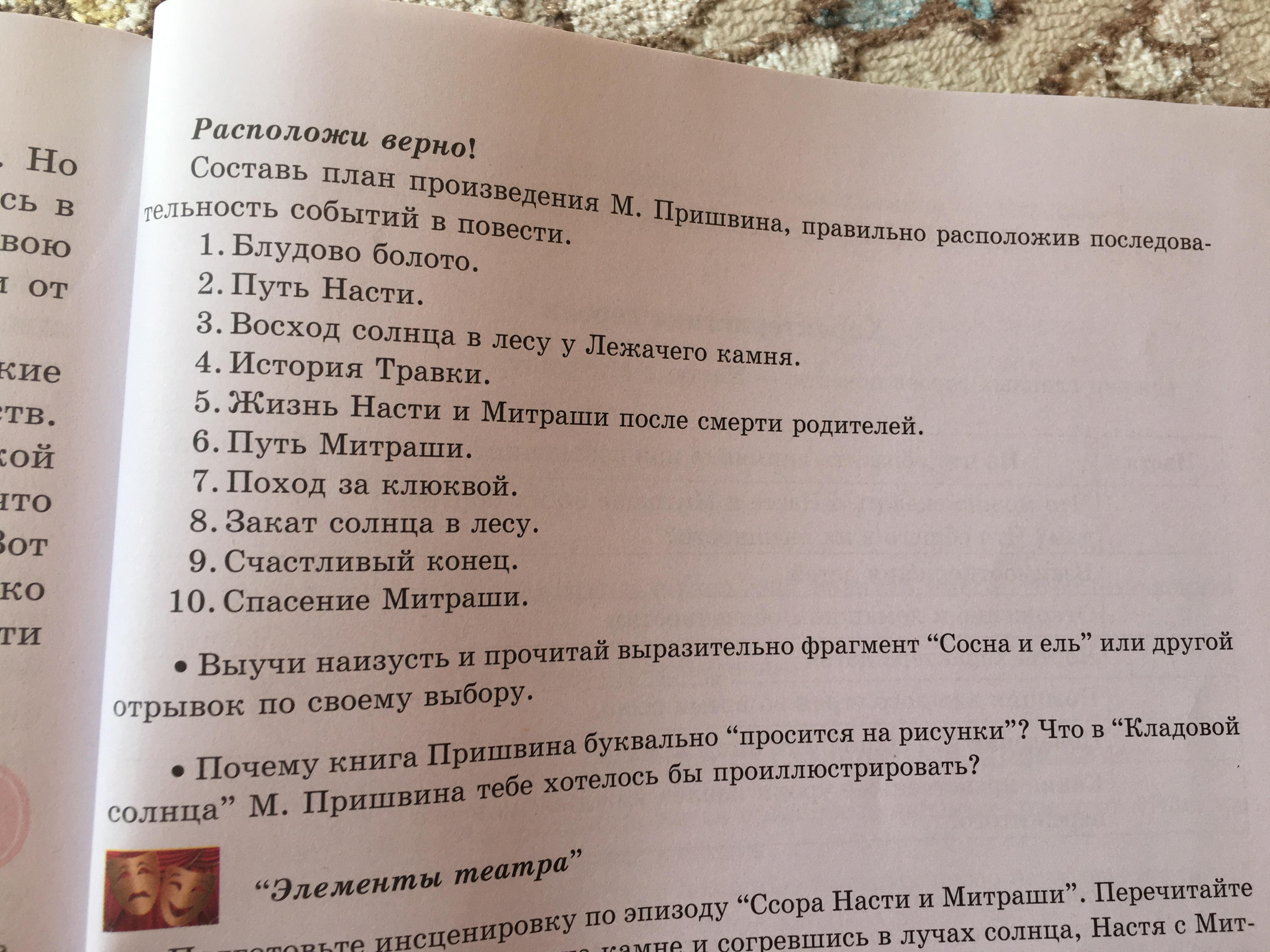 Помогите пожалуйста здесь нужно расставить по порядку главы сказки « Кладовая солнца»
