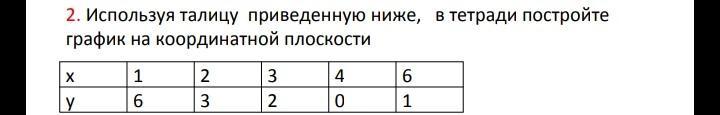 Используя таблицу проведенную ниже , постройте график на координатор плоскости.